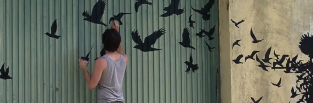 Présentée à la fois dans la rue et dans des événements artistiques, cette série illustre à quel point l’artiste Pejac parvient à faire vibrer un message universel avec une grande économie de moyens.